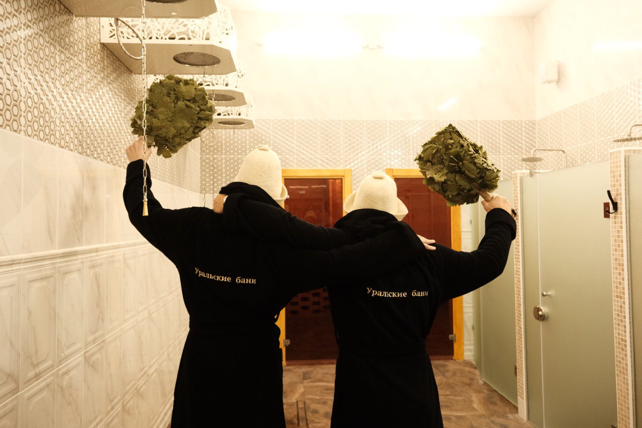 «Уральские бани» - это настоящий праздник для ценителей хорошей общественной бани и качественного пара. Авторский интерьер, особый пар с дровяных печей, вкуснейший ресторан, самые атмосферные коллективные парения и душевное обслуживание. Общий зал. Отдельные кабинеты для компаний 4, 6, 8 человек."